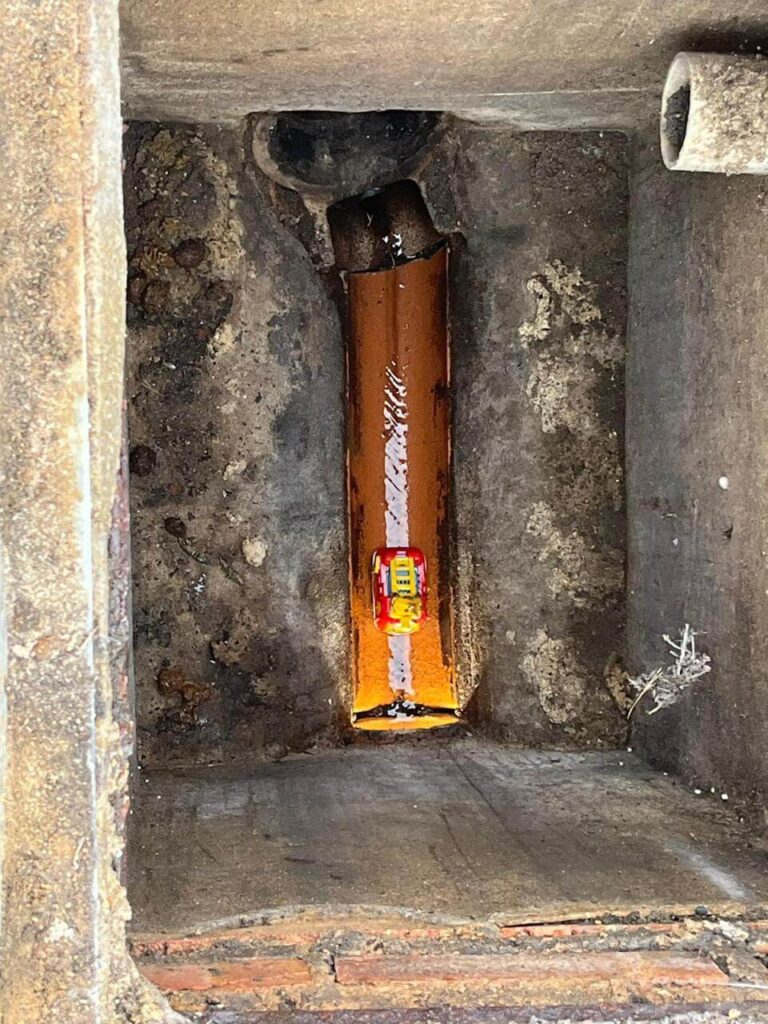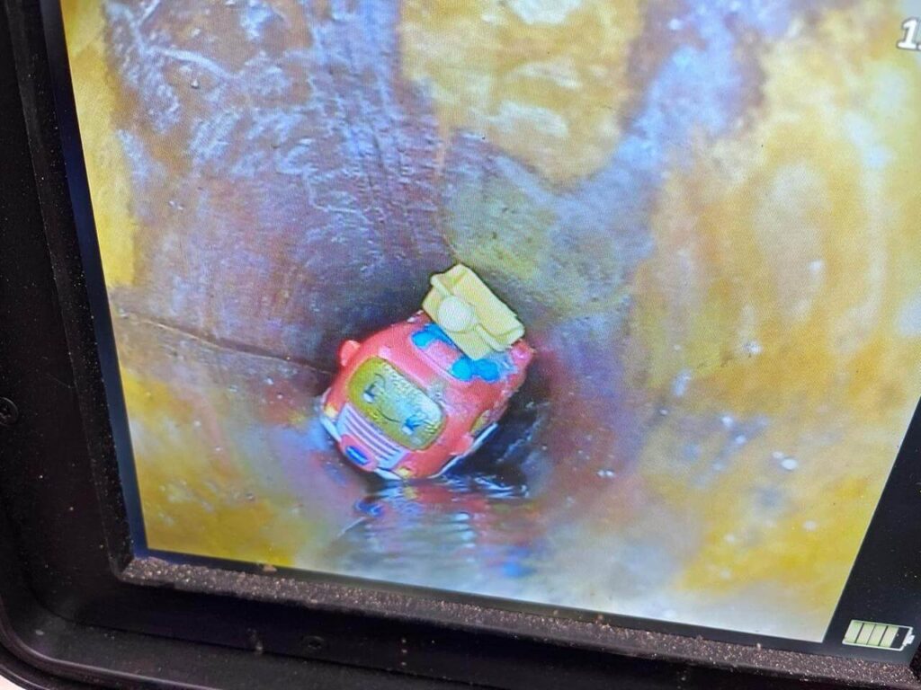To our surprise, the camera quickly revealed the culprit — a small fire engine had taken a wrong turn and become lodged within the drainage system.